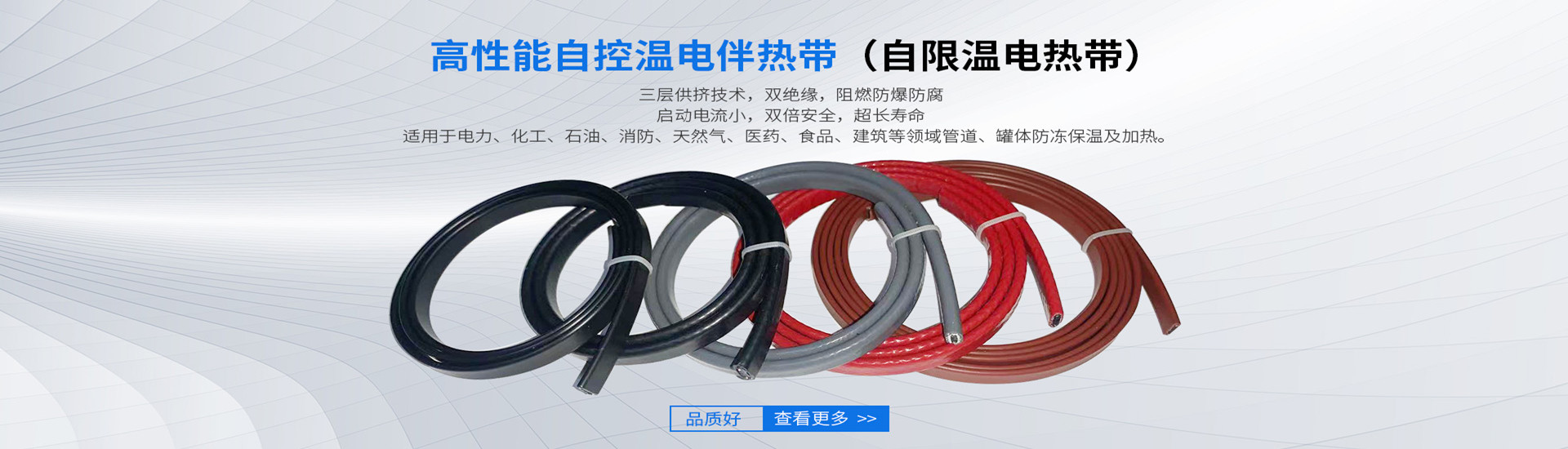 南京名尊電纜有限公司位于風景秀麗的南京市沿江工業開發區內,毗鄰國家級高新技術開發區,水陸交通非常便利。公司具有成套生產設備;完善的檢驗和檢測系統;為客戶提供各類管道及其他電伴熱工程的咨詢、設計、安裝、維護等一系列完善的服務。